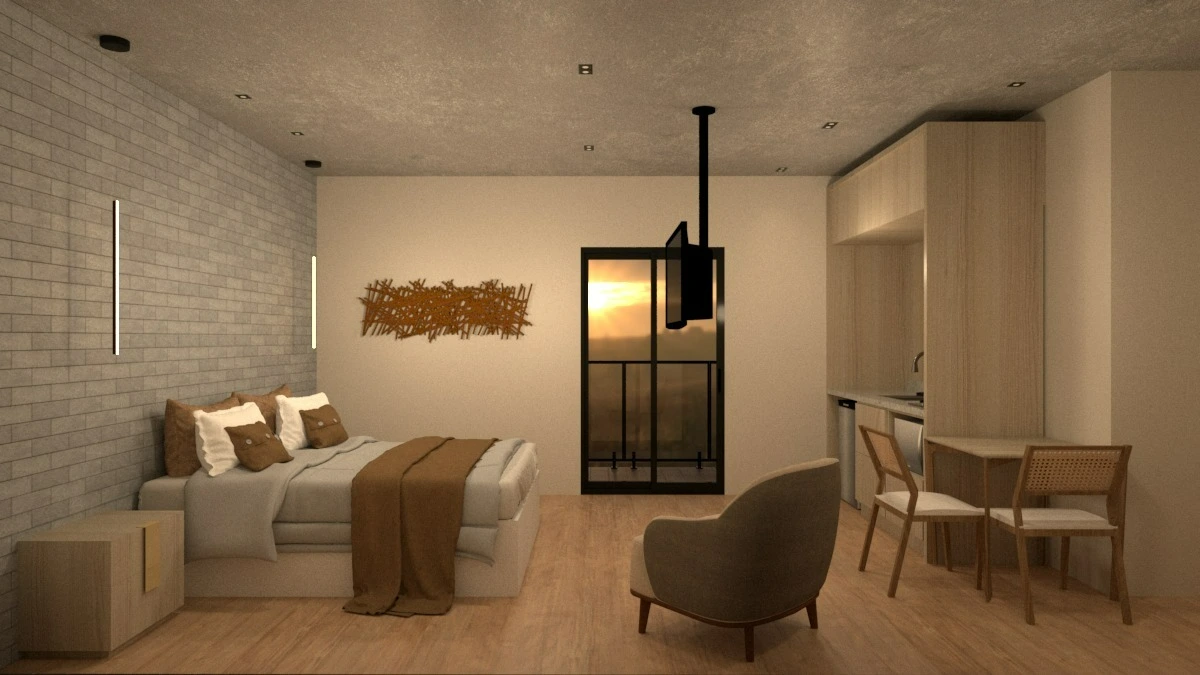 O Chalé Conforto é composto por quarto com cama queen size (há opção com cama de solteiro), com roupa de cama padrão hotelaria, minicozinha completa, banheiro com amenities e varanda privativa. Além de TV Smart, ar-condicionado quente e frio e wi-fi. Localizado no primeiro andar (acesso por escada).