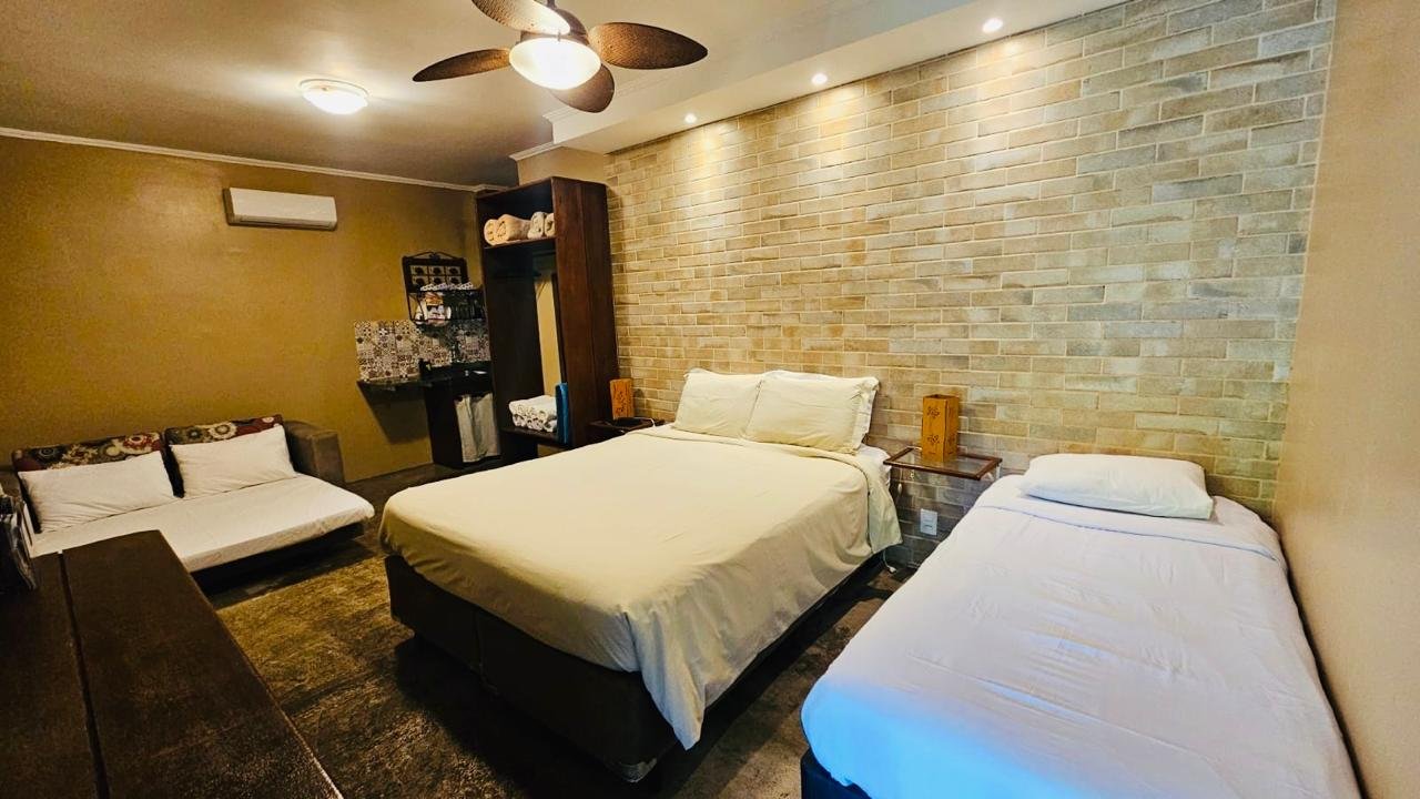 O quarto possui uma cama Queen-Size, uma cama de solteiro e um sofá cama (que vira cama de casal), todas com colchões de molas ensacadas e roupa de cama padrão hotelaria. No quarto também há armário, ventilador de teto, ar condicionado split (quente e frio), wi-fi, Smart TV 43 polegadas com canais abertos e Netflix.