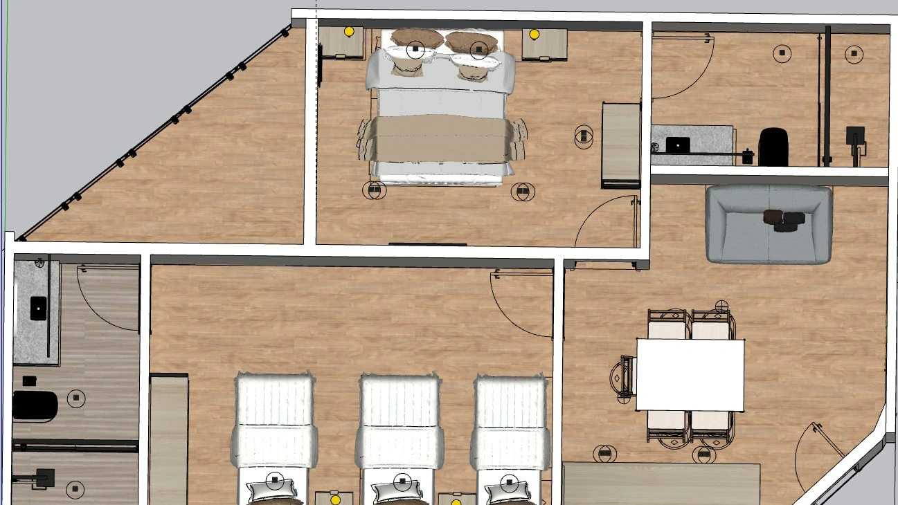 O Chalé Conforto Premium é basicamente um apartamento de 2 dormitórios muito confortável, composto de sala com cozinha integrada, 2 quartos (há opção com 2 suítes) com cama queen size e camas de solteiro, todos com roupa de cama padrão hotelaria, banheiro com amenities e varanda privativa. Além de TV Smart, ar-condicionado quente e frio e wi-fi. Localizado no primeiro andar (acesso por escada).